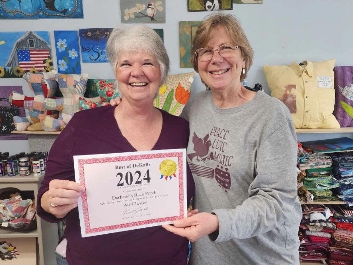 I offer a variety of art classes! Schedule your next paint parties for your next gathering, one on one instruction, or book a little time just to come create. Classes can be schedule for painting, sewing, quilting, embroidery, and crocheting. Voted Best of DeKalb 2023 and 2024! We will save a place for you at the table.
